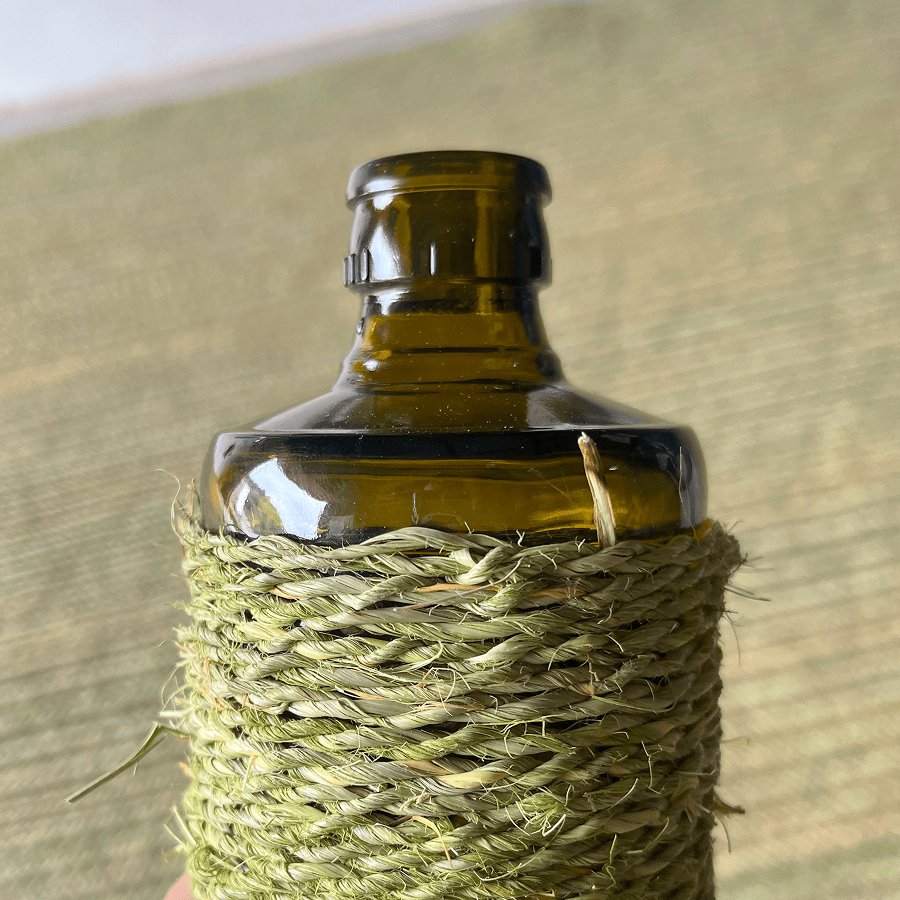 Cada botella se forra a mano con esparto natural por artesanos de Jaén. Una tradición milenaria que protege el aceite y lo convierte en una pieza única. Ninguna botella es igual a otra, como ninguna mano es igual a otra.